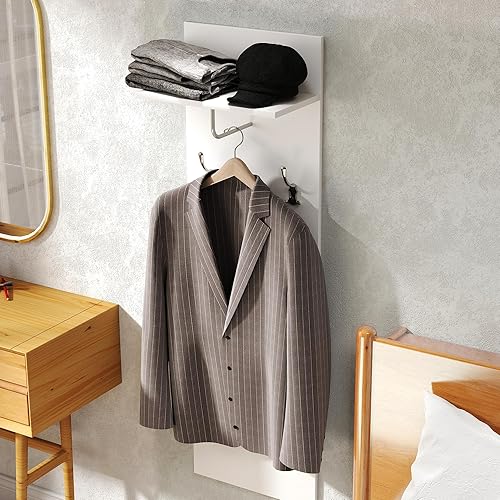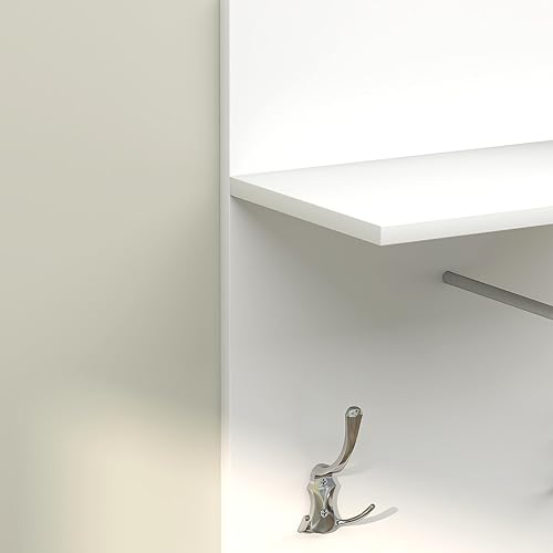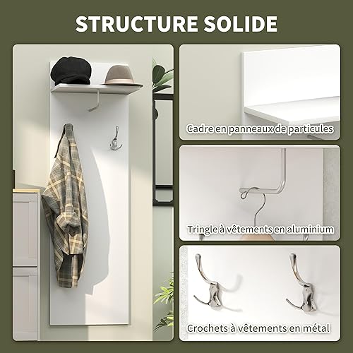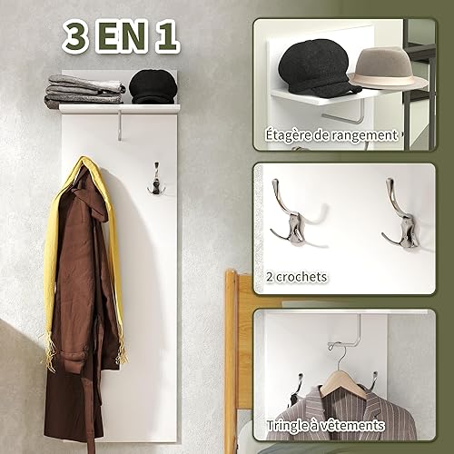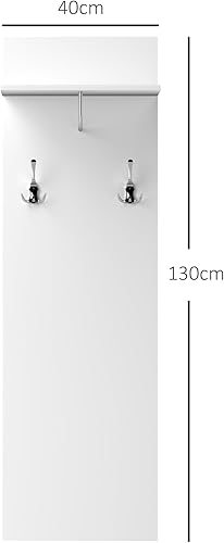 HOMCOM Porte-manteau mural meuble d'entrée avec étagère, 2 crochets et tringle en aluminium, pour entrée, couloir, chambre, dim. 40 x 21,3 x 130 cm, blanc