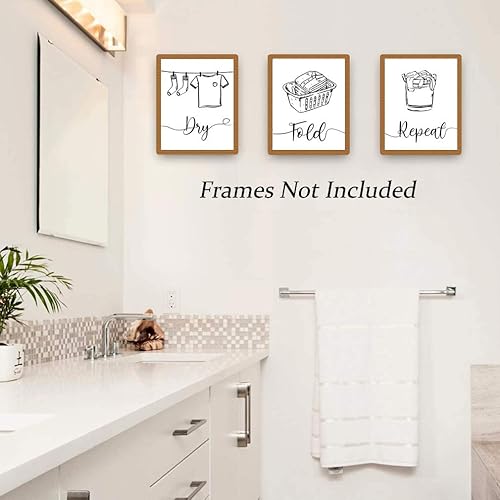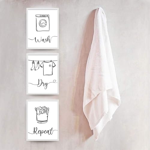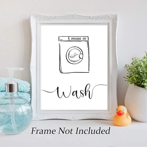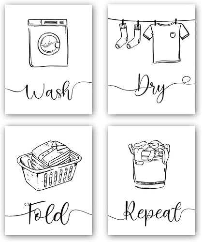 AIWU Lot de 4 affiches décoratives pour buanderie ou salle de bain (sans cadre) Noir et blanc 20,3 x 25,4 cm