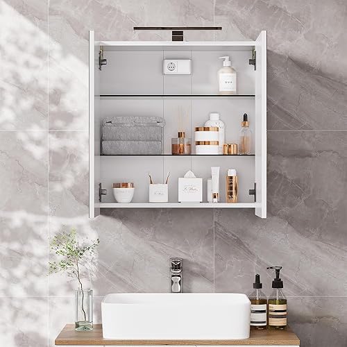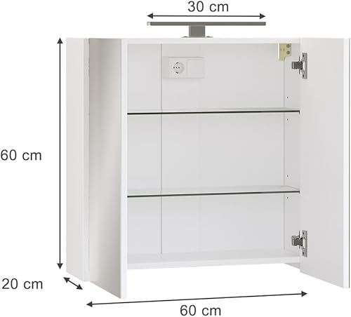 Vicco Armoire de Toilette Lavio, Blanc, 60x60cm avec éclairage LED
