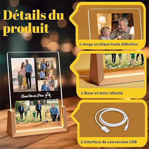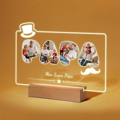 JONZIN Personnalisée avec Photo-Cadre Photo Personnalisé Plaque Acrylique Personnalisée, Cadeau pour Papa Cadeau Fete des Peres (4)