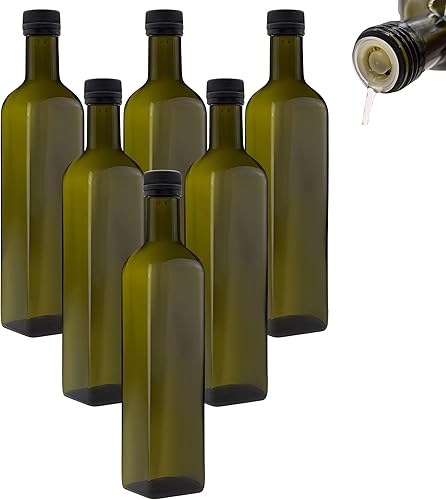 Lot de 6 bouteilles d'huile de 500 ml avec bec verseur, bouteilles en verre vert/marron avec doseur et étiquettes