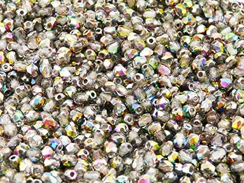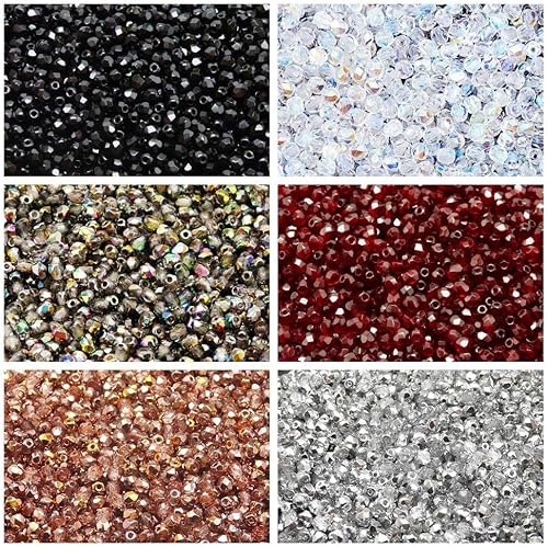 Perle de verre à facettes tchèques, Fire-Polished, rondes 3 mm, six couleurs, un total de 600 perles, Set FP632 (3FP001 3FP002 3FP003 3FP012 3FP064 3FP065)