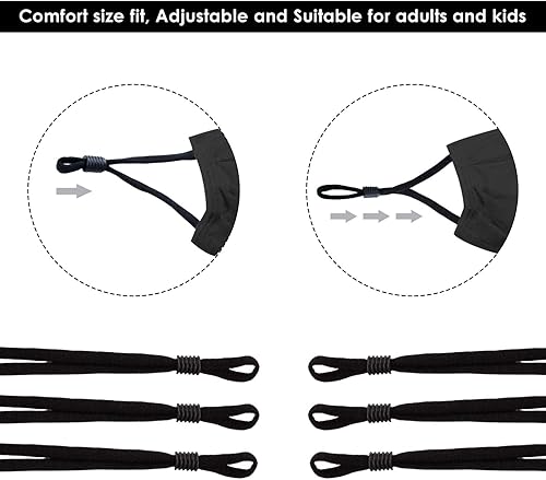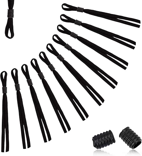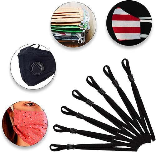 Bande élastique de 5 mm de large avec cordon de serrage, 9 mm x 6,5 mm en silicone antidérapant, 10 cm, fil extensible à coudre avec boucles réglables pour corde d'oreille, noir, 100 pièces