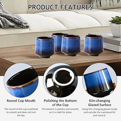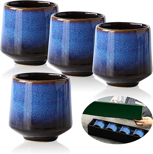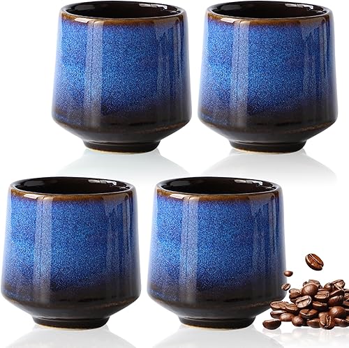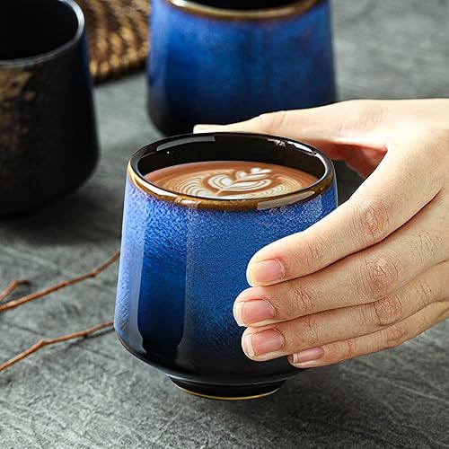 Set de Tasses à Cappuccino 4 Pièces,4 Tasses à Café de 220 ml - Sans Poignée,Tasses à café de Haute Qualité avec Boîte Cadeau,Tasses à Café en Céramique Faites à la Main