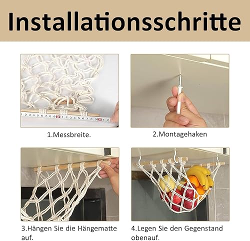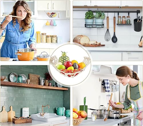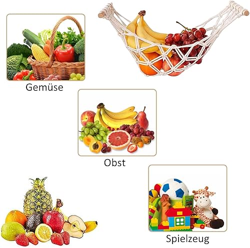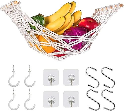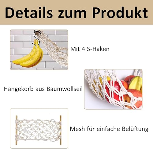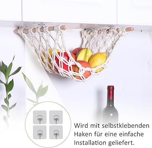 Hamac à Fruits, Filet de Fruits Tissé, Corbeille de Fruits Suspendue, Hamac pour Fruits et Légumes, Hamac à Fruits pour Cuisine, Avec Crochets, Panier de Rangement Mural pour Fruits