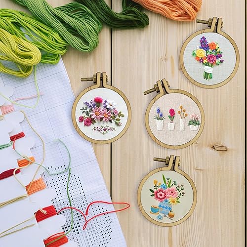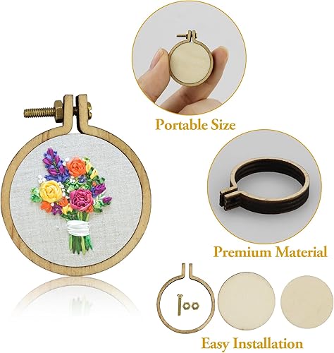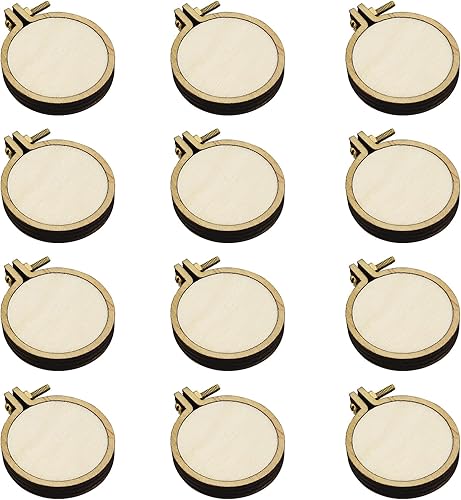 Lot de 12 mini cerceaux en bois perforés pour point de croix, cerceau à broder, point de croix, artisanat (3,5 cm × 3 cm, dimensions extérieures)