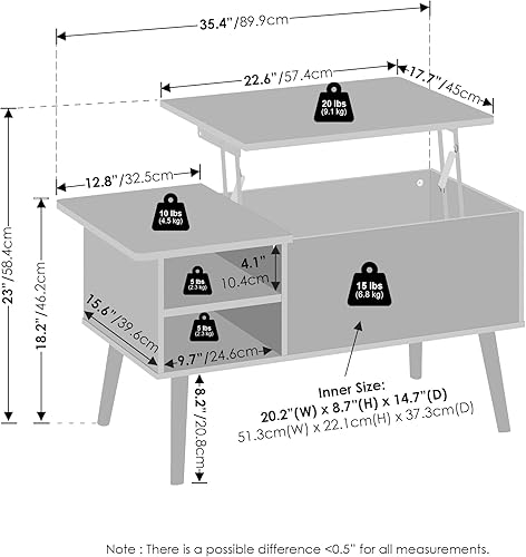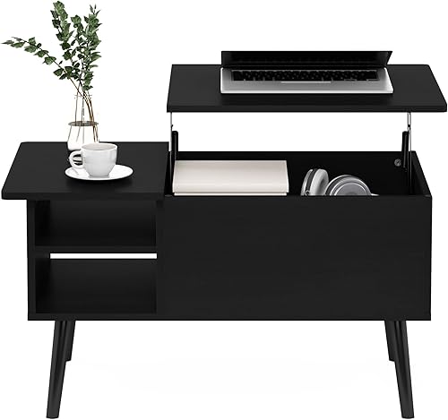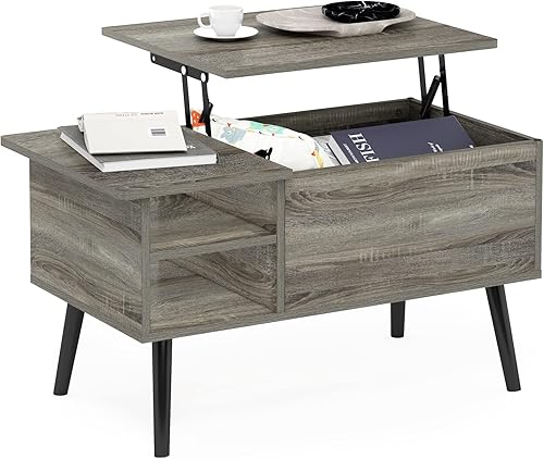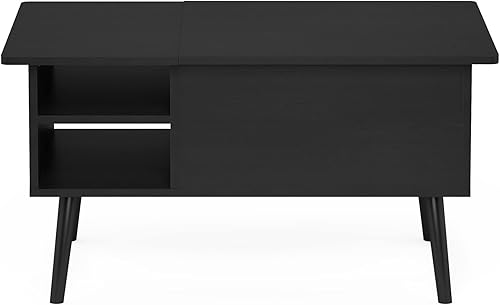 Furinno Jensen Table basse avec plateau relevable avec pieds en bois, compartiment caché et étagère latérale ouverte pour le salon, blanc massif
