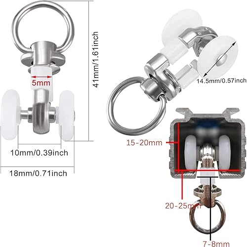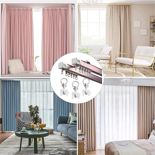 20 Pièces Crochet Rideaux Coulissants, Poulie Rail, Rouleaux Glissière, Planeur Pour Suspendre Rideaux Salon, Chambre à Coucher et Salle de Bain