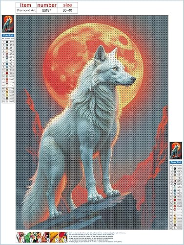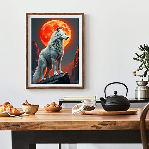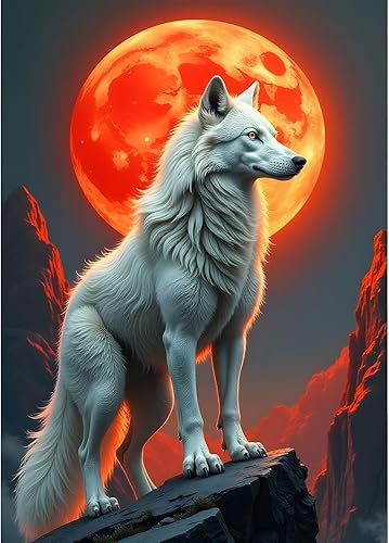 QQYRHN 5D DIY Loup Blanc Kits de Peinture Diamant, Complète Loup Lune Diamond Painting pour Adulte Débutants, Ciel Nocturne Art du Diamant, Décoration Murale Maison Peinture au Diamant Avec 30x40 cm