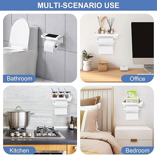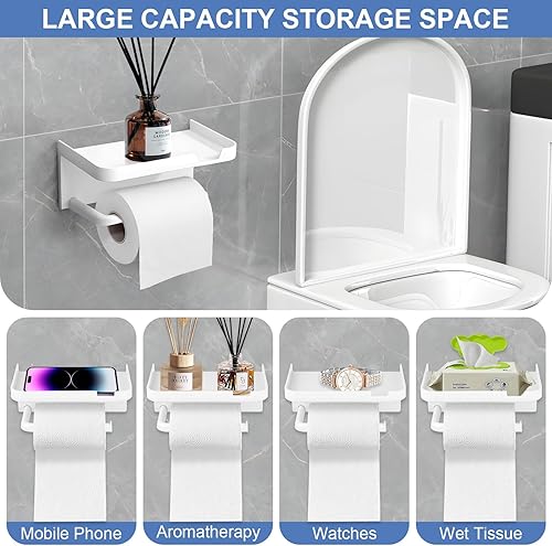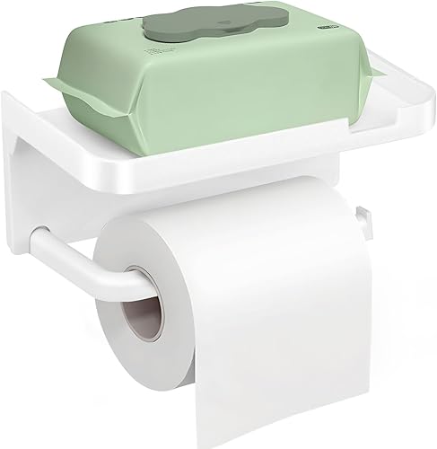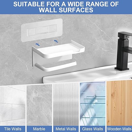 Porte-Rouleau avec étagères Spacieuses, Porte-Papier Mural, Support de Papier Toilette Auto-adhésif, Porte-Papier Toilette sans Perçage, pour Toilettes et Cuisines, Salle de Bain, Rangement