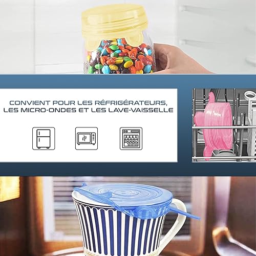 Couvercle pot yaourt confiture conserve 12 pieces ecologiques elastiques reutilisables sans BPA Lavage au lave-vaisselle couvercle pot yaourt la laitiere couvercle pot confiture conserve