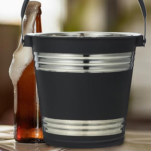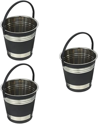 PRETYZOOM 3 Pièces Seau à Glace en Acier Inoxydable Distributeur ouvreur Pouvez Portion Verre Mini bac à glaçons bac à glacons Seau de Stockage pour la Maison Seau à glaçons ktv Baril Black