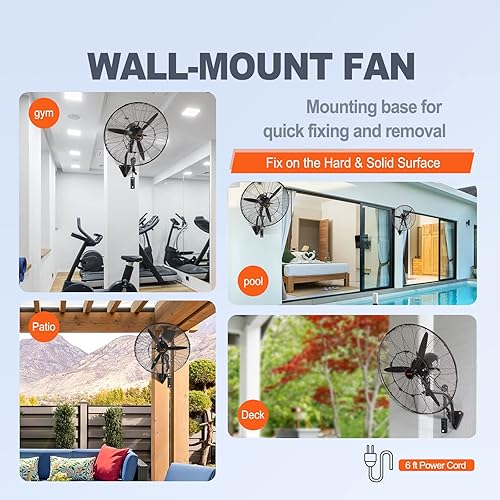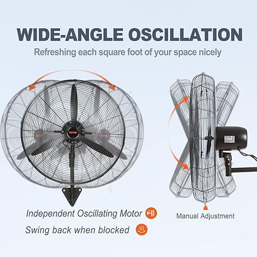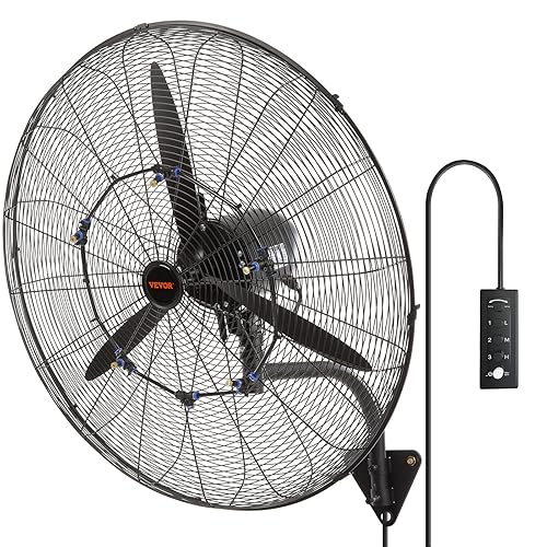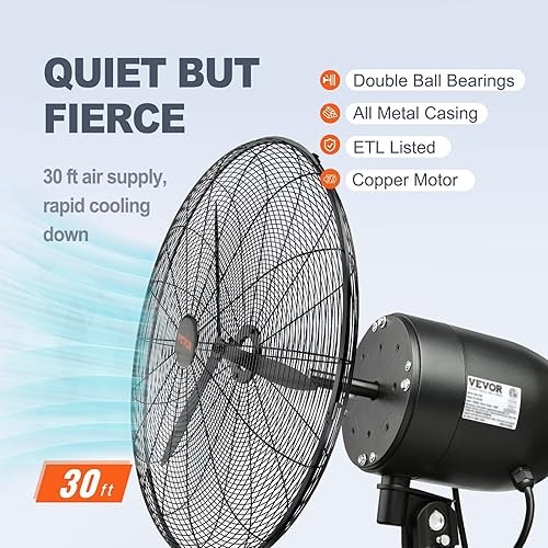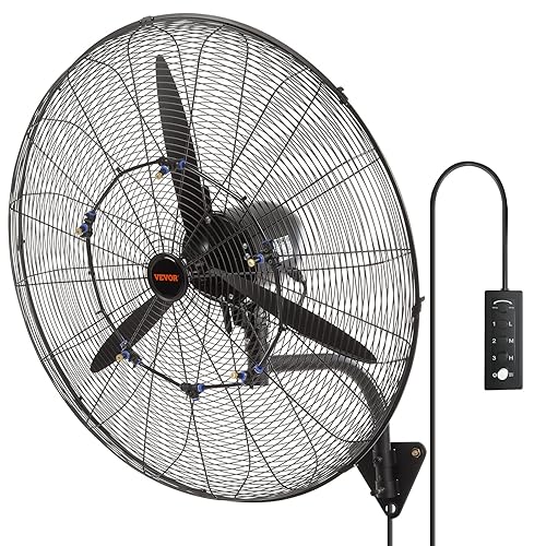 VEVOR Ventilateur brumisateur mural, 74,9 cm, ventilateur industriel oscillant étanche, 3 vitesses, 9500 CFM, ventilateur commercial ou résidentiel pour refroidissement entrepôt, serre, atelier, noir