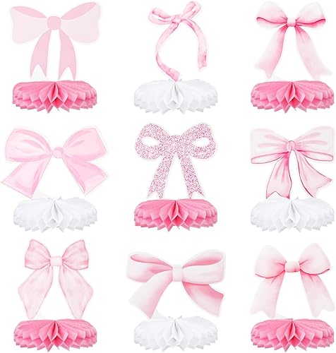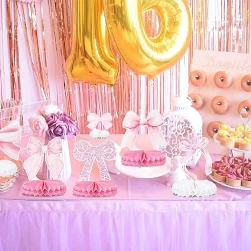 Lot de 9 Centre de Table Rose Anniversaire, Centres de Table en Nid d'Abeille pour Fête d'Anniversaire Décorations de Fête Prénatale Bannière de Fête d'Anniversaire de Princesse pour Filles