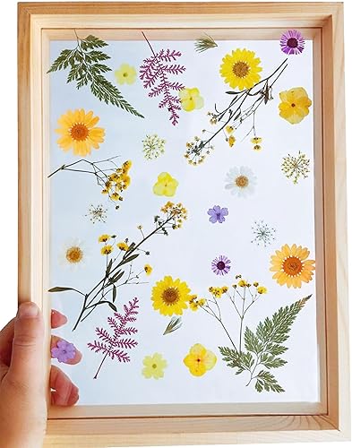 Woohome 69 PCS Bricolage Fleurs Séchées Ensemble Feuilles Naturelles Pressées à Sec, Fleurs Pressées Séchées Fleurs Sechees Naturelles pour L'artisanat d'art de Bricolage