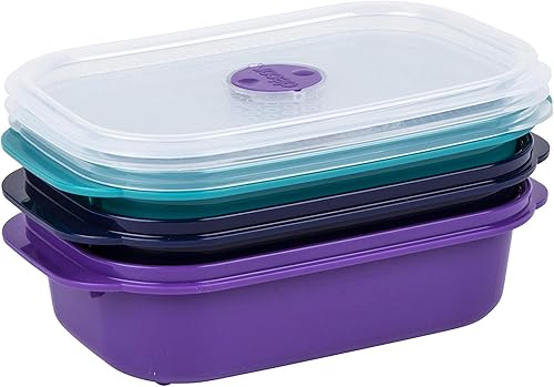 Décor Microsafe Jewel Lot de 3 boîtes alimentaires – 3 x 900 ml | Préparation des repas | Évent d'évacuation de la vapeur | Passe au micro-ondes, lave-vaisselle et congélateur | Couleurs assorties