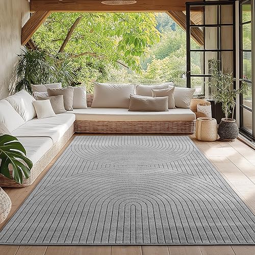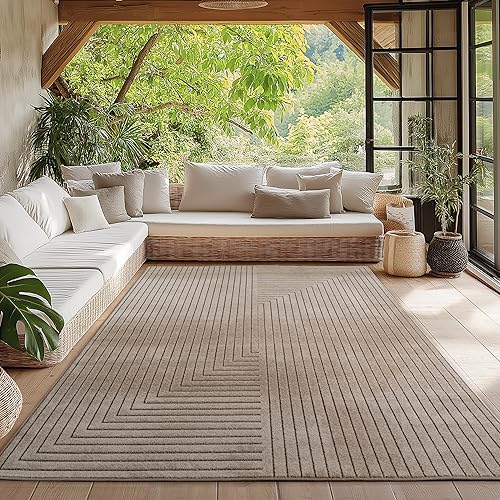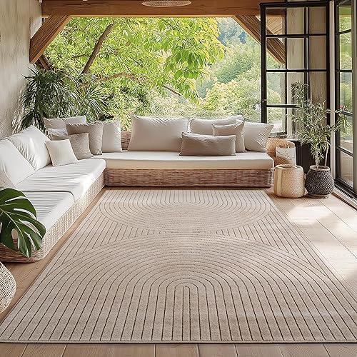 HomebyHome Tapis pour Salon, Chambre, Véranda - Poils Courts Crème, Effet Relief, Doux et Lavable, Adapté à l Extérieur, Facile à Entretenir, 200x290 cm