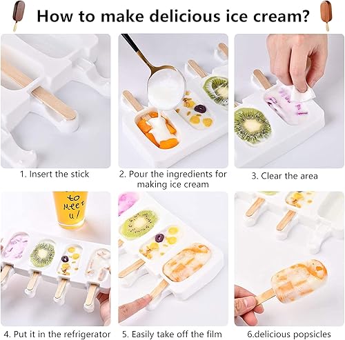 Lot de 2 Moules a Glace Silicone, Moule à Glace en Silicone, Popsicle Ice Maker Réutilisable, Popsicle Moule Sans BPA, DIY Crème Glacée pour Enfant et Adulte