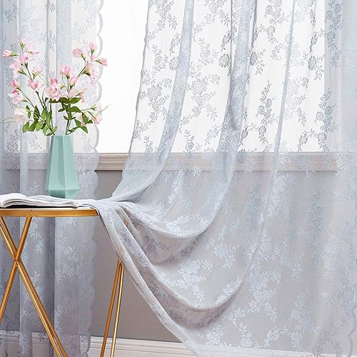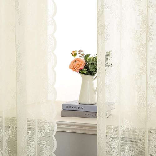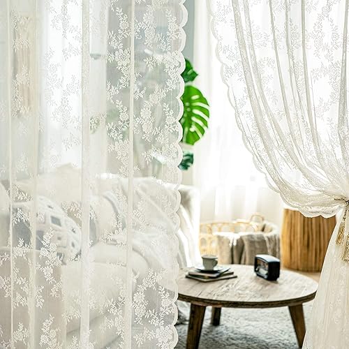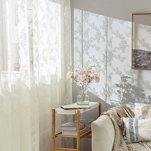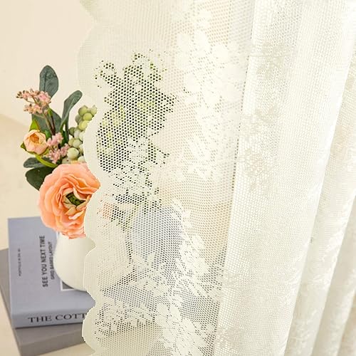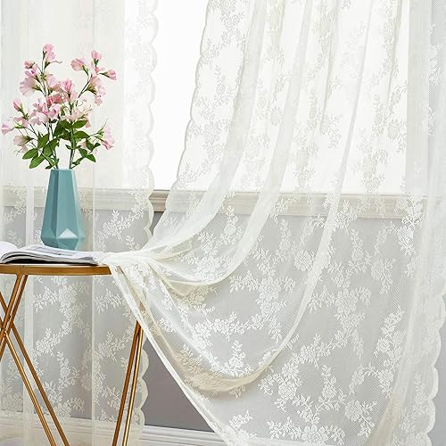 MIULEE Rideau Dentelle-Rideaux de Dentelle Transparente Brodée Florale avec Bords Festonnés, Rideaux Voilage Blanc avec Motifs Floraux, Rideaux Filtrant pour Chambre à Coucher, Salon, 2X150x245CM