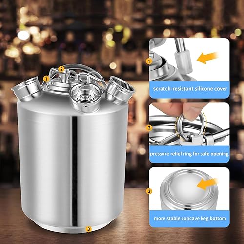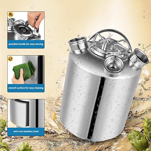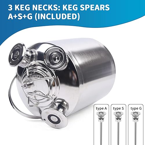 TAZZOR Fût de nettoyage de bière 10 l en acier inoxydable – Kit de nettoyage avec brochettes A, S, G – Distributeur de bière et nettoyant pour canalisations de bière – Réservoir de nettoyage