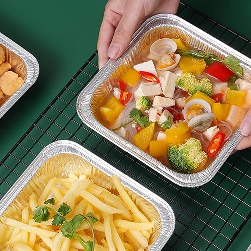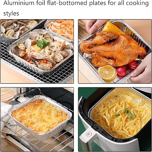 JMIATRY Lot de 60 Barquette Aluminium Avec Couvercle 21x21x4.5CM, Barquette Aluminium, Boite Alimentaire Jetable pour Barbecue, Congélation, Cuisson au four Barquettes Barbecue Plateaux