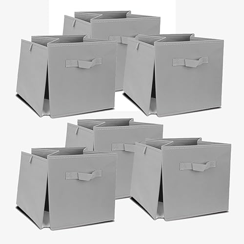 JUANIO Lot de 12 cube de rangement pliable, coffre de rangement, boîte de rangement en tissu avec poignées coloris gris - Longueur 31 x Profondeur 31 x Hauteur 31 cm