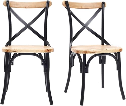 Miliboo Chaises bistrot Bois Clair Massif et métal Noir (Lot de 2) Jake