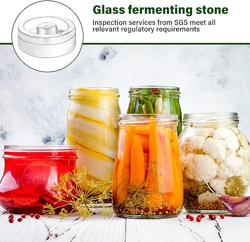 Nizirioo Lot de 4 poids en verre pour fermentation - Bocal de fermentation lourd avec poignée - Pour aliments fermentés maison - Pierre d'alourdissement - Choucroute Kimchi - Pour bocaux à col large
