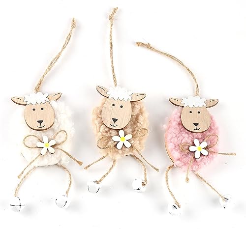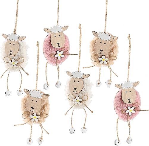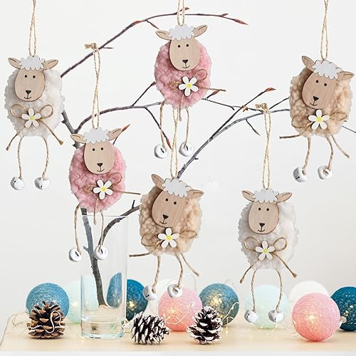 HERZWILD Lot de 6 pendentifs en bois de mouton de Pâques à suspendre - Décoration de Pâques