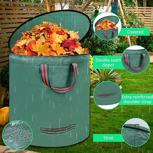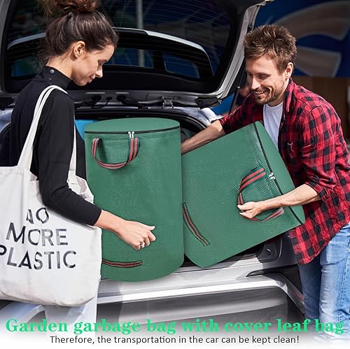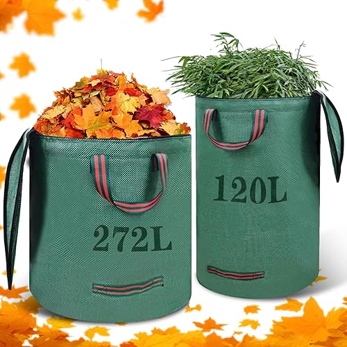 Plstod Sac Jardin Dechets Verts, Paquet de 2 120L et 272L Sac Dechets Verts, Sacs à Déchets de Jardin Avec Couvercle et Poignée, Durable, Imperméable, Adapté Aux Déchets Herbe, Feuilles