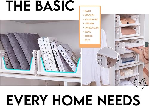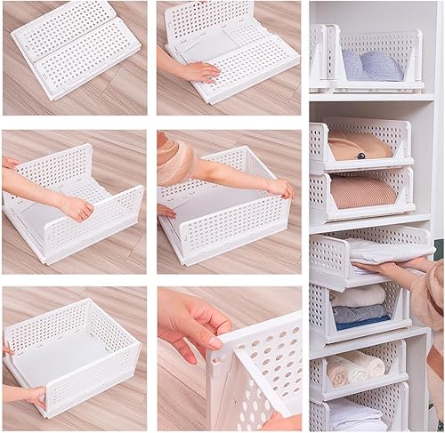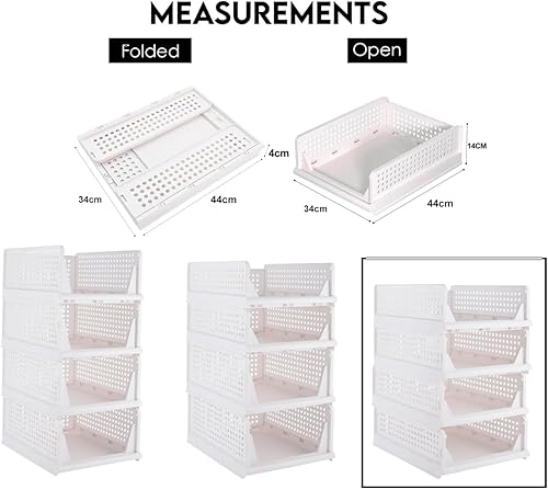 PAIDE P Organisateur de Placard Empilable. Pack de 4 Organisateur Armoire Vetement. Tiroirs Pliables en Plastique. Les Boîtes de Rangement Permettent d'économiser de l'espace. (S-44x34x14)