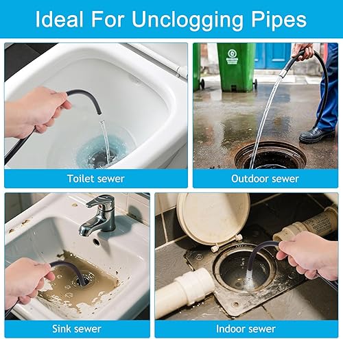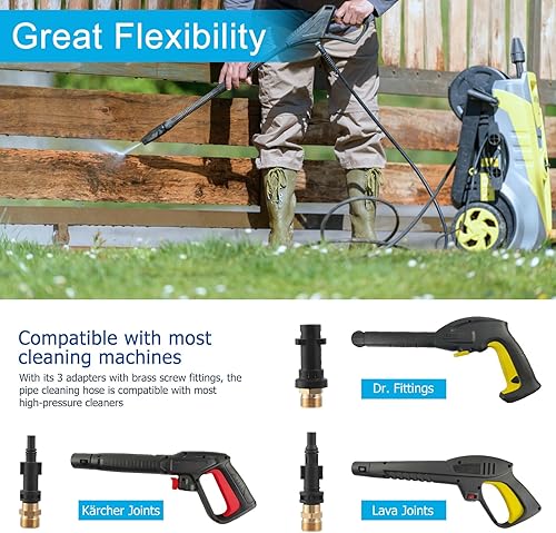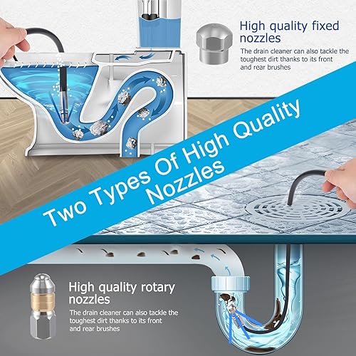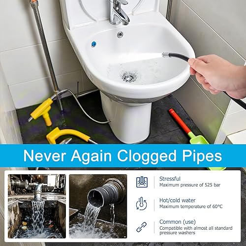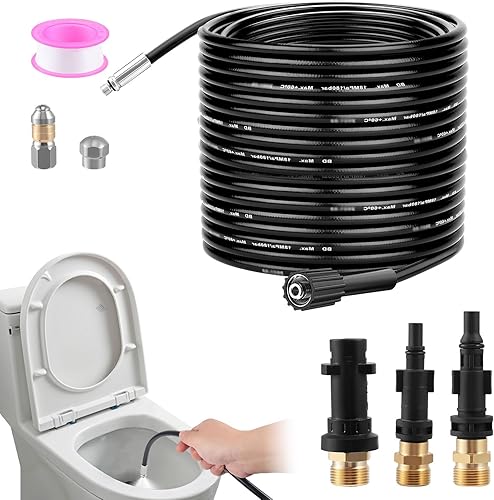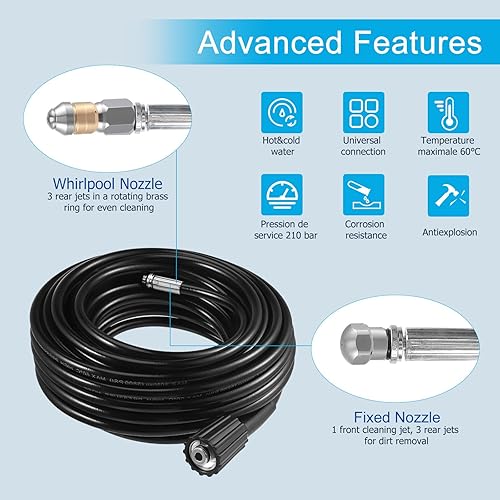Furet Deboucheur Canalisation Haute Pression 15M,Tuyau Flexible 210 Bar 60°C,Avec Adaptateur,Buse Fixe/Rotative,Rallonge De TUyau Karcher,TUyau Pour Karcher Nettoyeur Compatible Avec Kärcher K2-K7