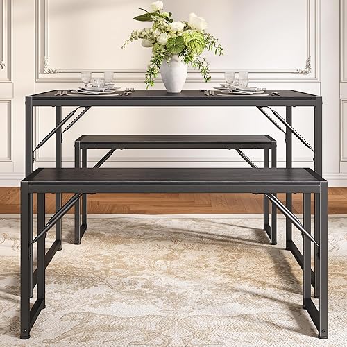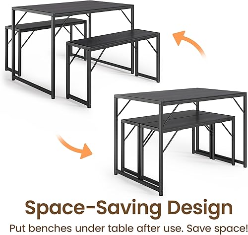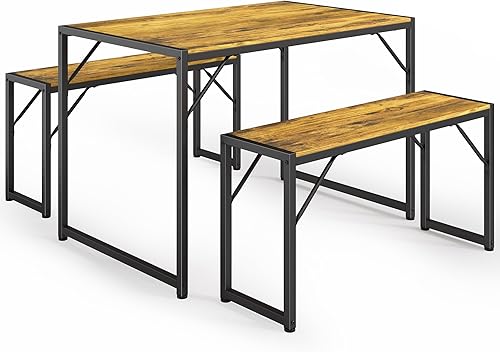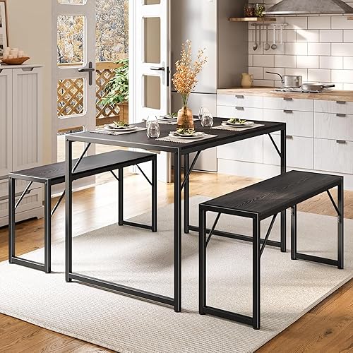 Bealife Table à Manger avec 2 Bancs, Ensemble Table de Cuisine 3 Pièces, Table de Salle à Manger de 110 x 70 x 75 cm, 2 Bancs de 97 x 30 x 50 cm, pour Salle à Manger, Cuisine et Salon (Rétro)