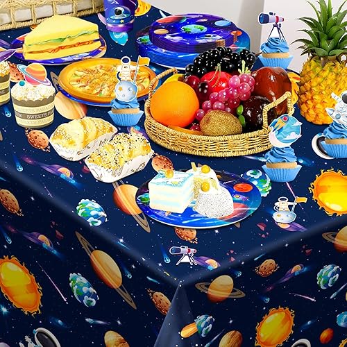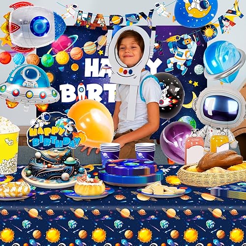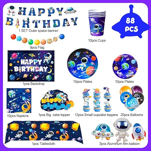 Décoration Anniversaire Espace,88 Pcs Decoration Anniversaire Astronaute&Vaisselle de Fête Astronaute Anniversaire-Ballons Anniversaire Espace Bannière Fond Assiettes etc Décorations de Fête Spatiale