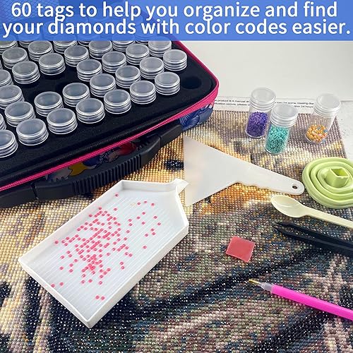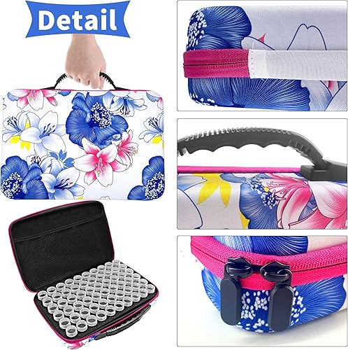 VAIIEYO Boite de Rangement Diamond Painting, Portable Pratique étui de Bijoux Perles Anneaux, 60 Emplacements Diamant Painting Accessoires pour Peinture Diamant 5D Complet Broderie Diamant Painting
