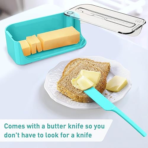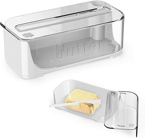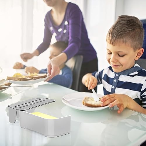 Beurrier en Plastique Style Occidental, Boîte à Beurre Hermétique avec Couvercle Transparent, Pieds Antidérapants & Couteau Inclus, Beurrier Plastique Pour Frigo, Fromage, Collations - Blanc