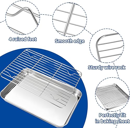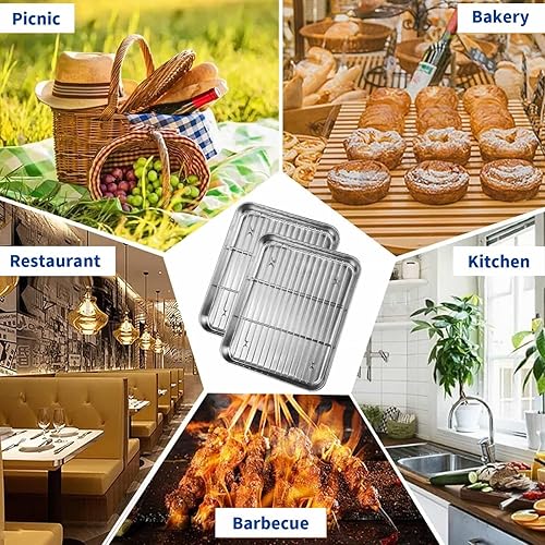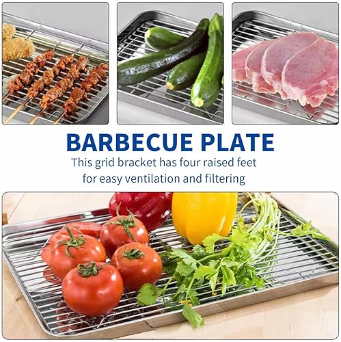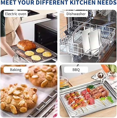 Ensemble de plaques de cuisson, plaque de cuisson et grille [2 feuilles + 2 grille], plateaux de cuisson en acier inoxydable antiadhésifs, grands plateaux de four professionnels pour la cuisine, 40,5