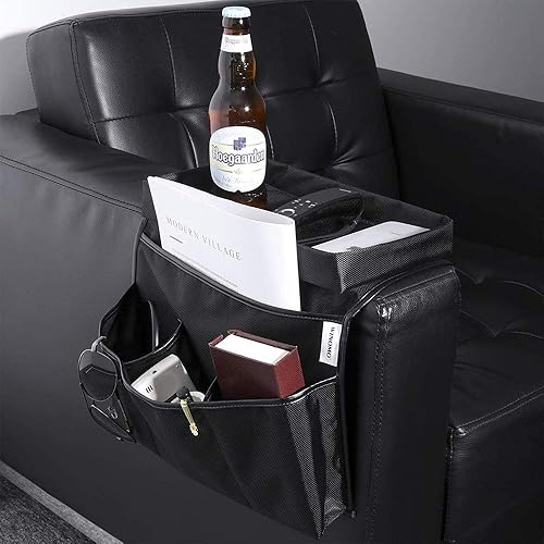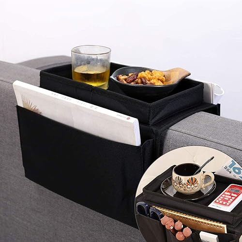 Yhuasia Organiseur de Canapé en Feutre, Rangement pour Téléphone, Accoudoir Sac Organisateur pour Salon, Livres, Magazine, Snack, Lunettes, Télécommande (Noir)