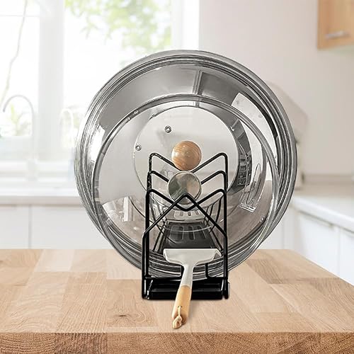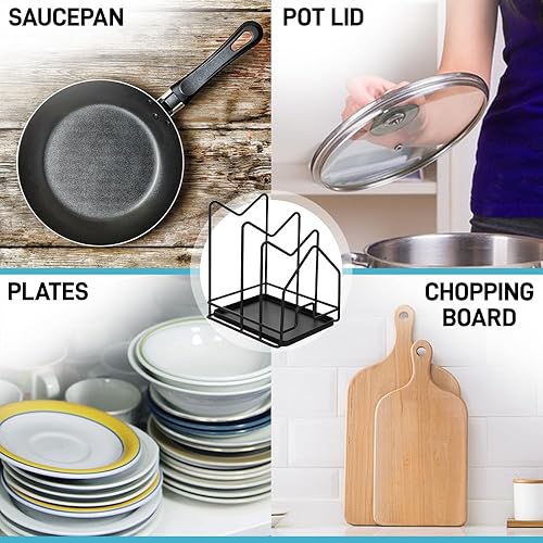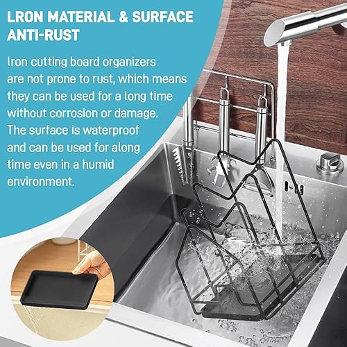 imposyu Porte Planche à Découper Métal avec Egouttoir Range Couvercle Casserole Support Planche à Découper Rangement Couvercle Casserole pour Ranger Ustensiles de Cuisine