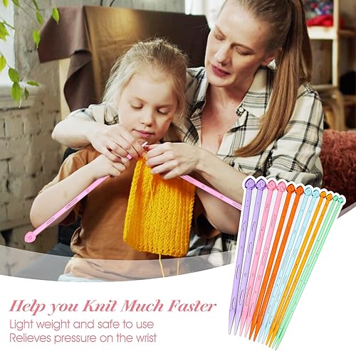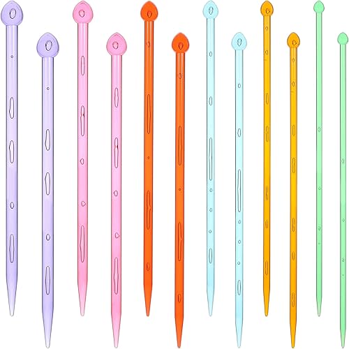 Piriuuo Lot de 6 paires/12 aiguilles à tricoter en plastique, 25 cm, aiguilles à tricoter en acrylique pour débutants, loisirs créatifs, 5 mm à 10 mm (multicolore)