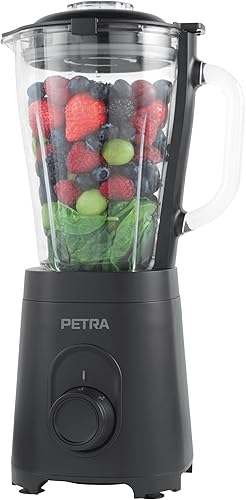 Petra Mixeur Blender 600W avec Bol en Verre 1.5L, Blender Smoothie avec Lames Inox & 2 Vitesses, Mixeur pour Soupes & Smoothies avec Fonction Pulse, Couvercle Sécurisé Sans BPA, Noir