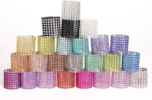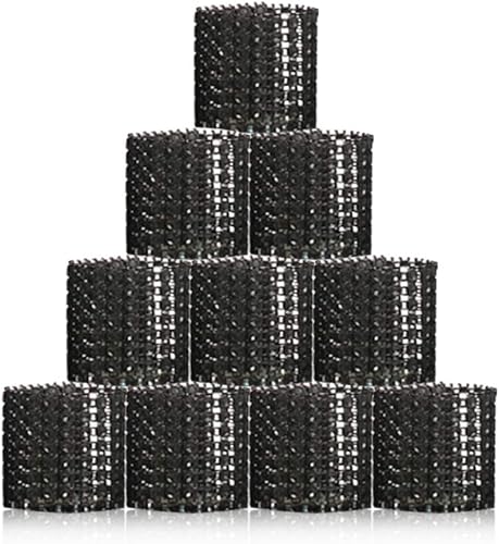MoreChioce Lot de 50 Ronds de Serviette,Table Porte-Serviettes élégant Anneau de Serviette Ruban Diamant Bague Déco Ruban à Strass avec fermeture pour Décoration de Mariage, Banquet,Noir