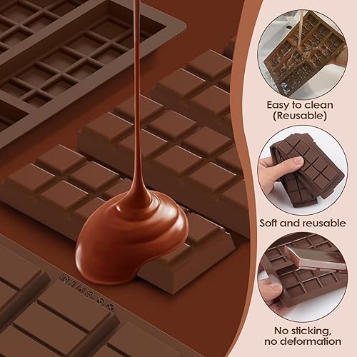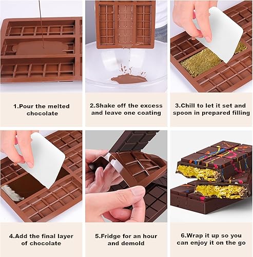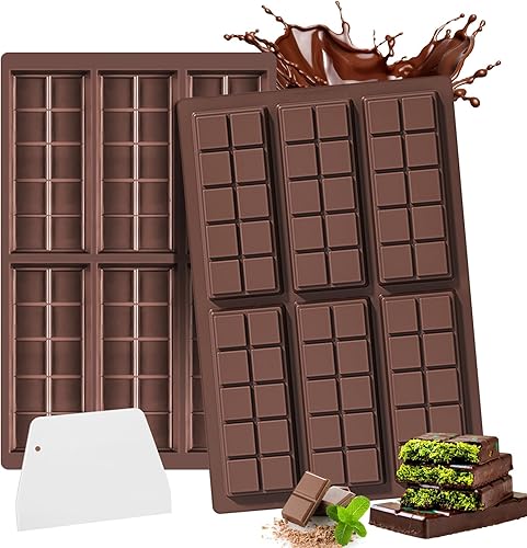Moule à chocolat en silicone profond, 2 pièces de moule en silicone, moule de bar avec grattoir, moule à chocolat extra profond, moule de bar à chocolat avec revêtement anti-adhésif, bonbons