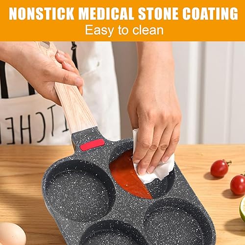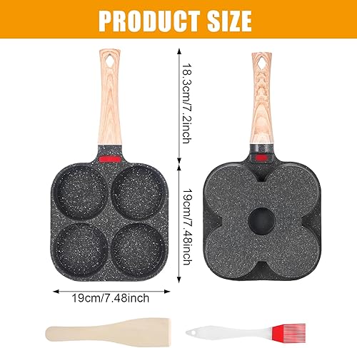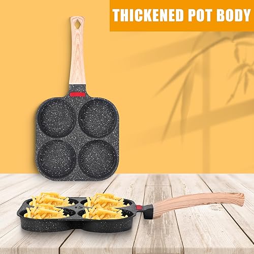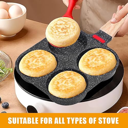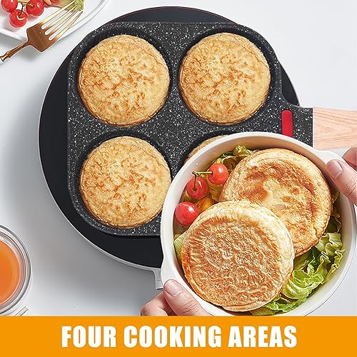 Poêle à Pancakes de 4 Trous, Poele a Oeufs Antiadhésive, Poêle Multifonctionnel pour Omelette, Pancakes, Hamburger, Petit-déjeuner Oeuf Au Plat, pour Cuisinière à Gaz