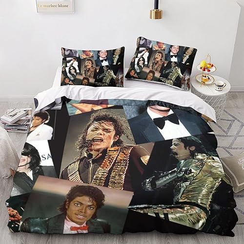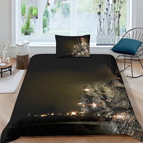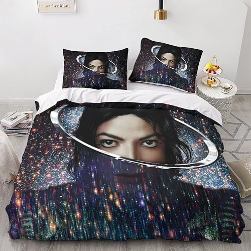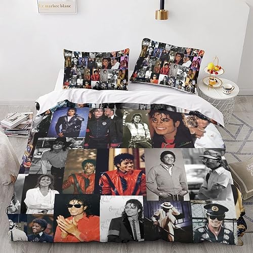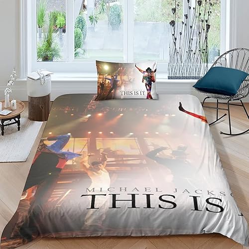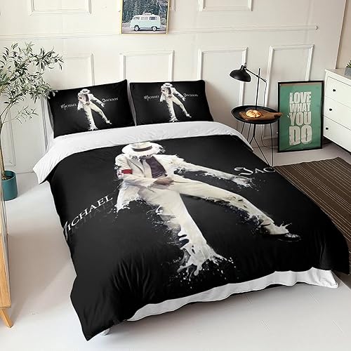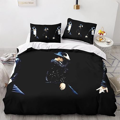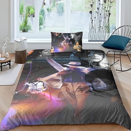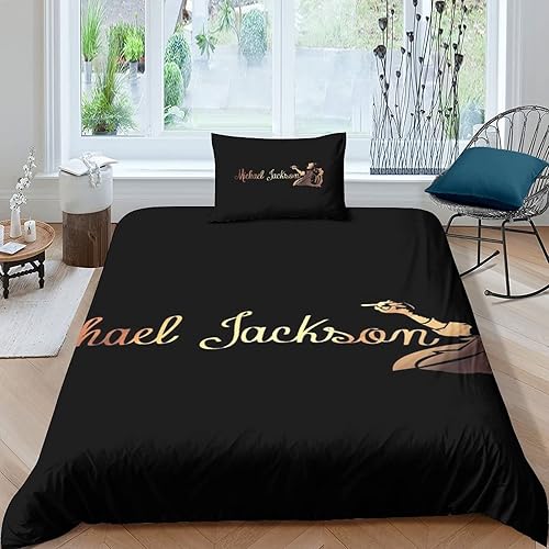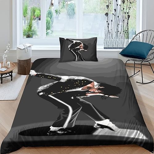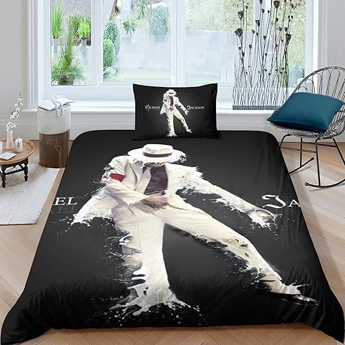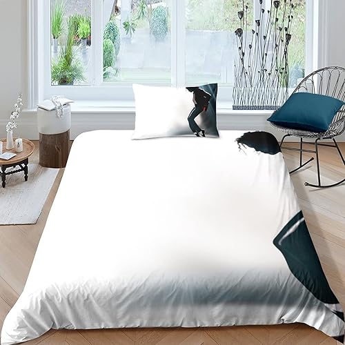 LENTLY Michael Jackson Parure De Lit pour Enfants Adultes, Ensemble De Housse De Couette pour Garçons, Ensemble De Literie avec Taie d'oreiller Single(135x200cm)