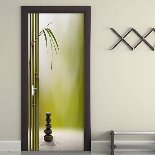 Sticker Porte Pierre de Bambou Autocollant de Porte 3D Style Chinois Papier Peint Trompe l'Oeil Stickers Poster Muraux de Décoration pour Mural Salon Chambre 77x200 cm a.5937