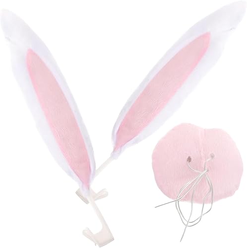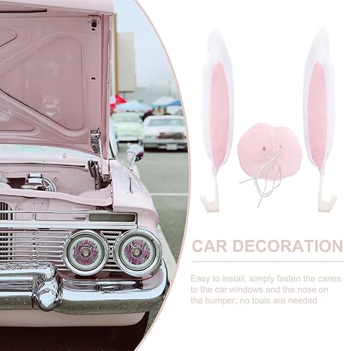 DEARMAMY 1 Ensemble De Décorations d'oreilles De Lapin De Voiture De Pâques Décoration De Voiture De Lapin De Pâques Kit De Nez d'oreilles De Lapin Rose pour Décoration De Fête De Pâques