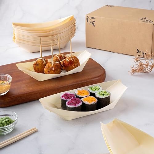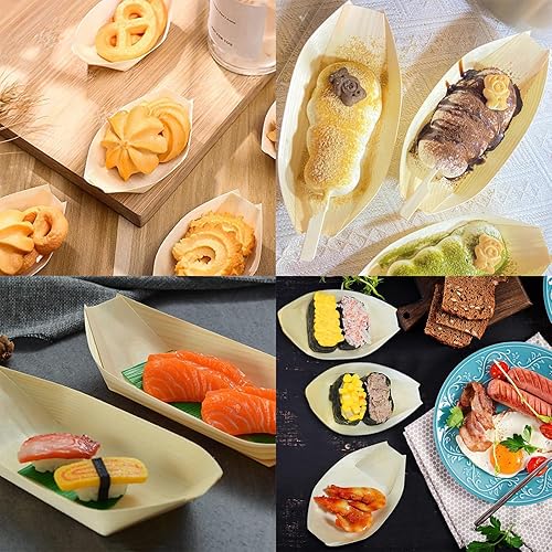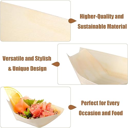 Bateaux en Bois,100 PCS Coupelle Alimentaire Bol en Bois Coupelles en Boisbateau Barquette Alimentaire en Boisbols pour Sushis Frites Apéritifs Buffets Mariages et Anniversaires