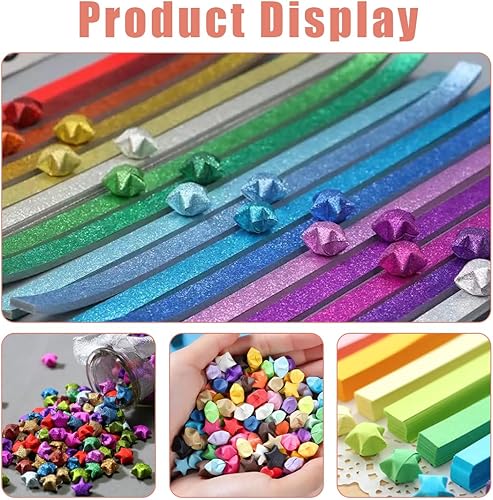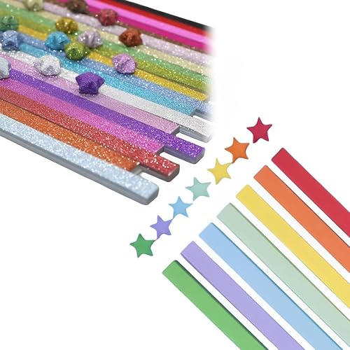 CPJJ 740 Feuilles Bandes de Papier Origami Étoiles,Bandes de Papier Origami à Paillettes,24x1 CM Multicolore Papier Origami pour Bricolage et Décoration