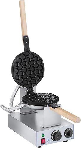 Royal Catering Gaufrier Bubble Waffle Appareil a Gaufres Waffle Machine a Gaufre RCWM-1400-B (1.415 W, Matériau Acier/Aluminium, 1Poignée en bois résistante à la chaleur, Température 50-250 °C)